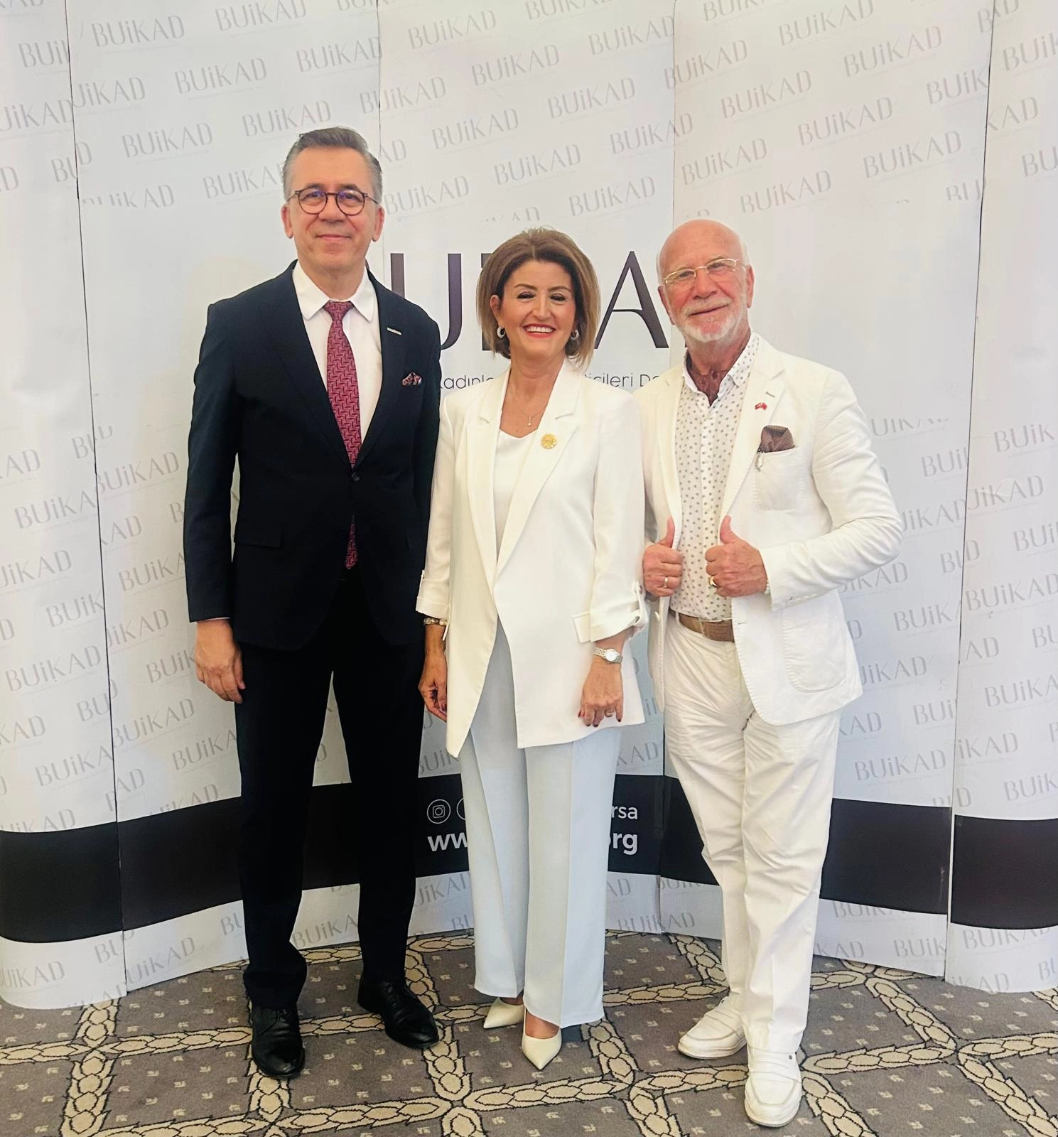 2025 Yılı BUİKAD etkinliğinde Başkan Şeyda Şençayır ve Nejat Yahya ile.